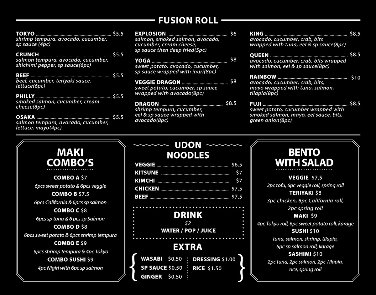 Welcome to Tokyo Roll, a delightful sushi haven located at 1598 Argyle St, Halifax, NS. Specializing in fresh, made-to-order sushi rolls, this takeout-only spot offers an impressive menu catering to every palate. Their Fusion Rolls, including the signature Tokyo Roll and unique options like the Yoga and Veggie Dragon Rolls, ensure a vibrant flavor experience.